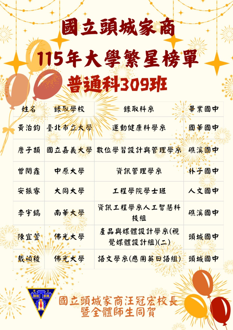 | 2026-03-17 | 🎉 國立頭城家商 80 週年校慶|頭家八十・耀承未來 🎉 | 進修部 |