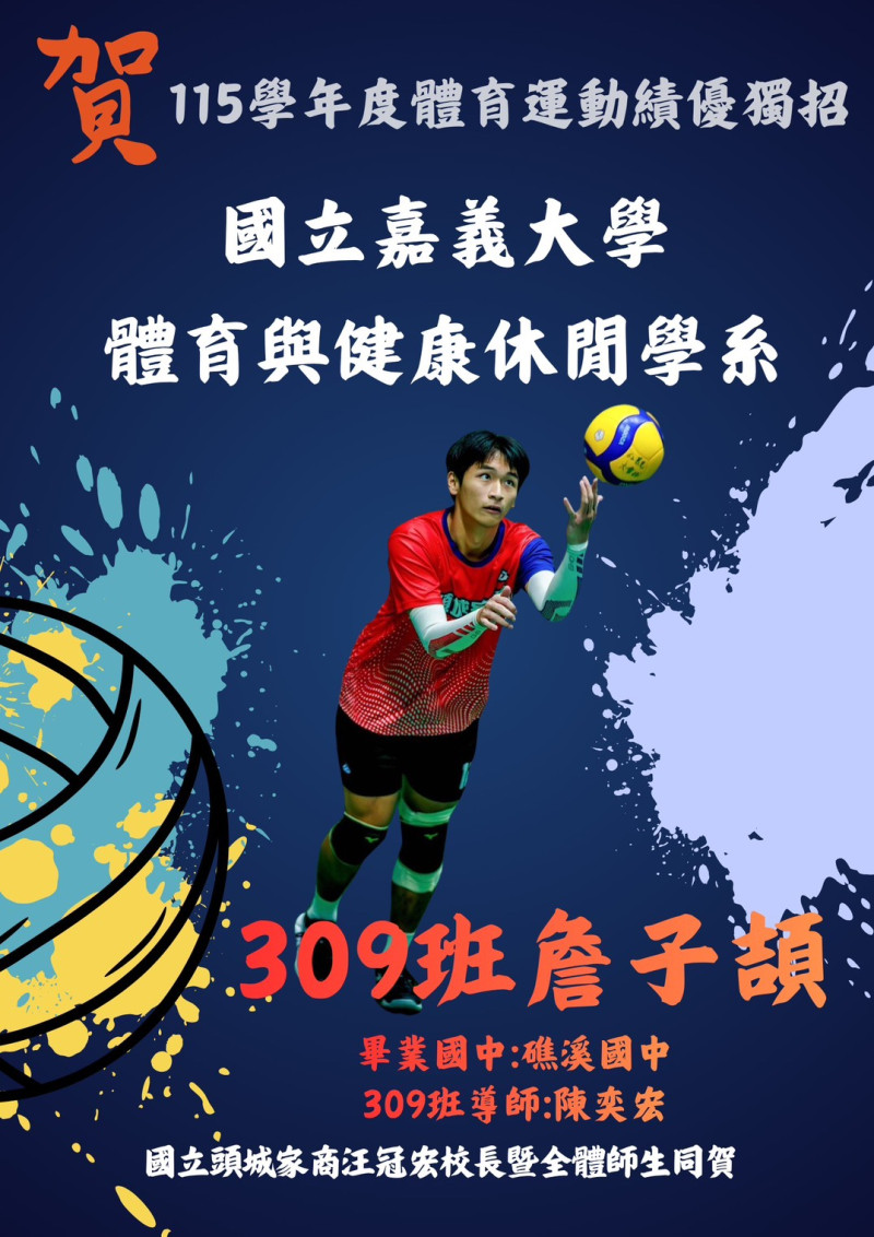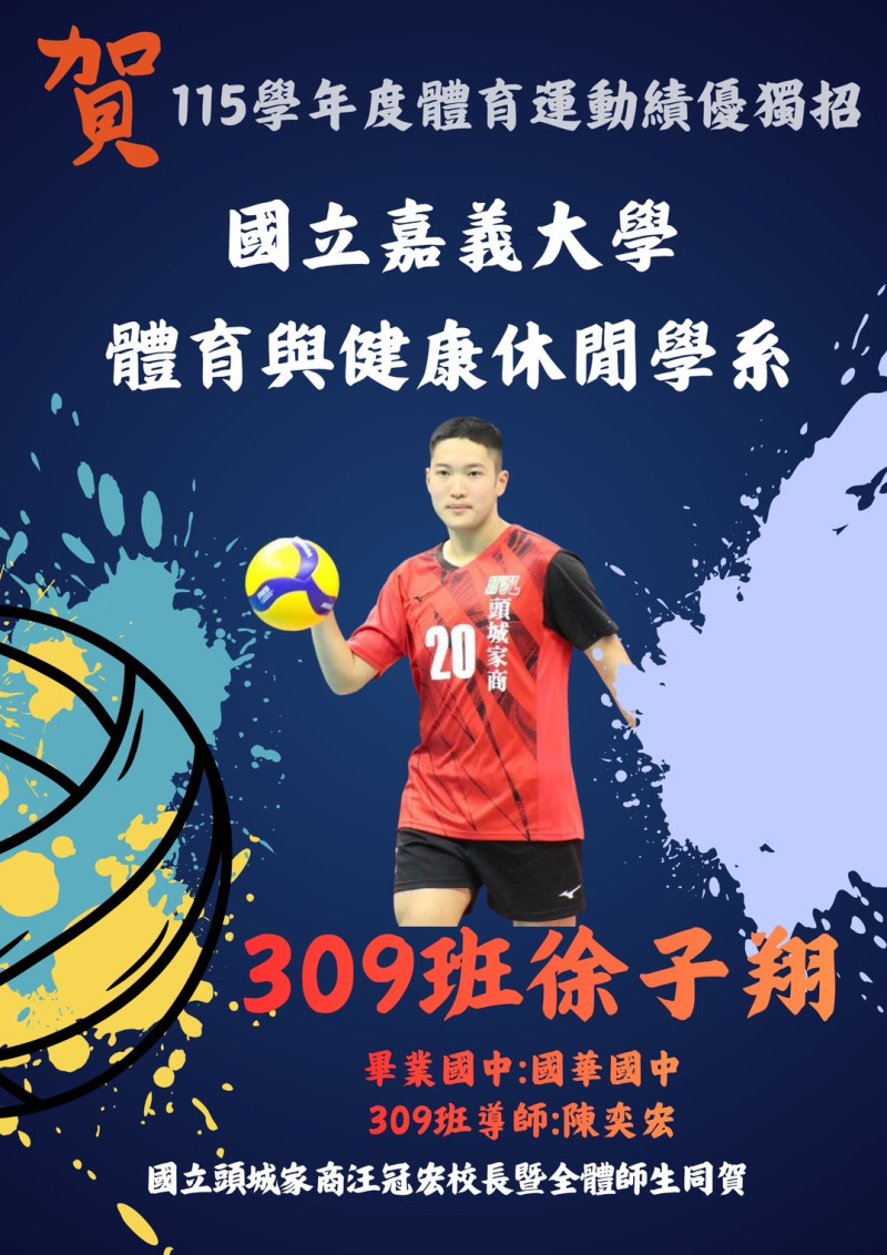 | 2026-03-25 | 【升學】賀🎉恭喜309班劉惟盛同學,錄取國立臺灣體育運動大學 | 教務處 |