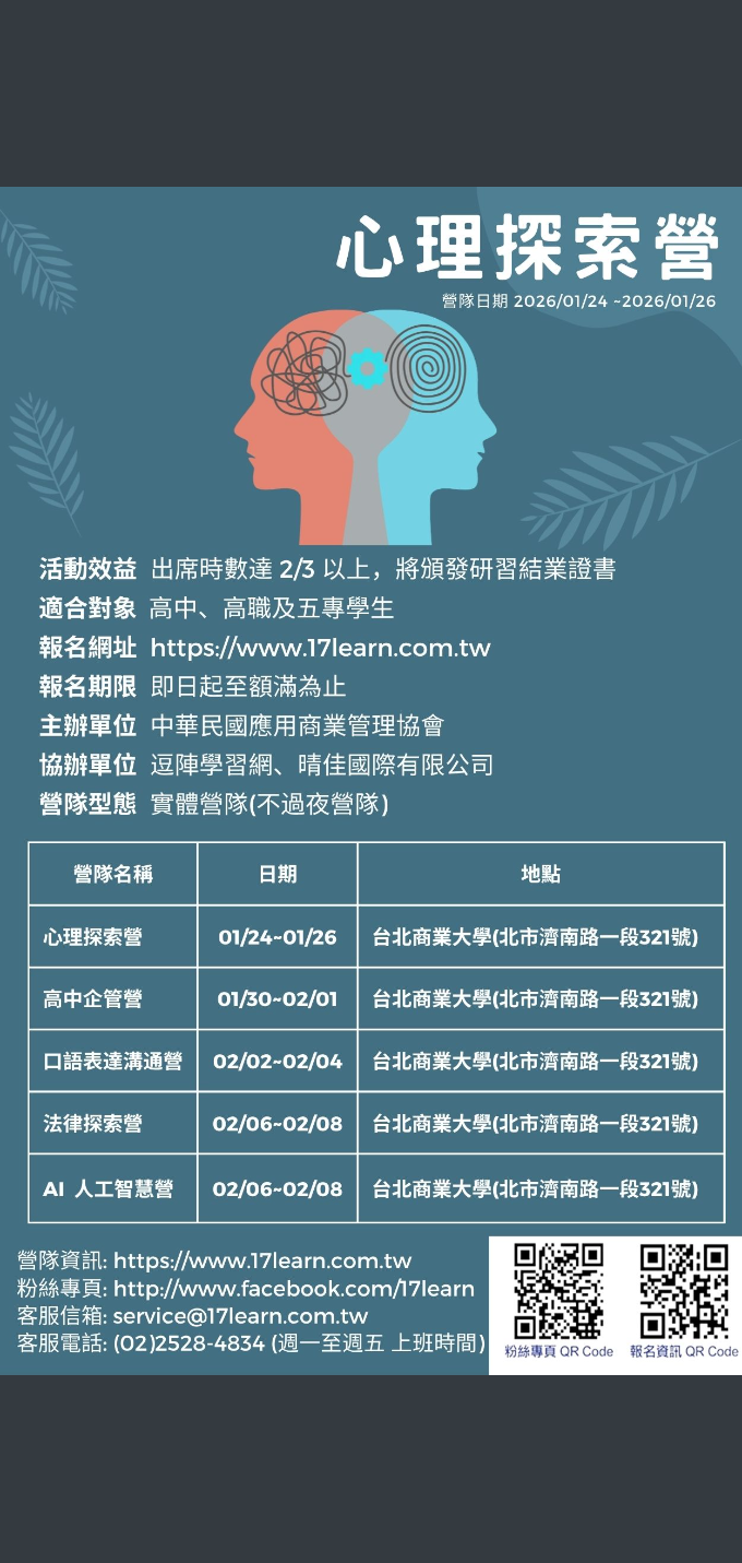 | 2025-10-08 | 教育部「青年生涯領航計畫」線上說明會場次(家長場、師生場) | 輔導室 |