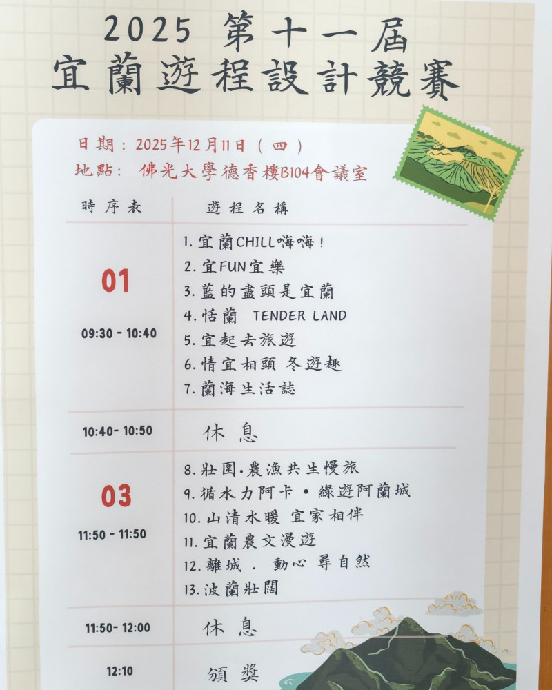 在 2025 第十一屆宜蘭遊程設計競賽 中,