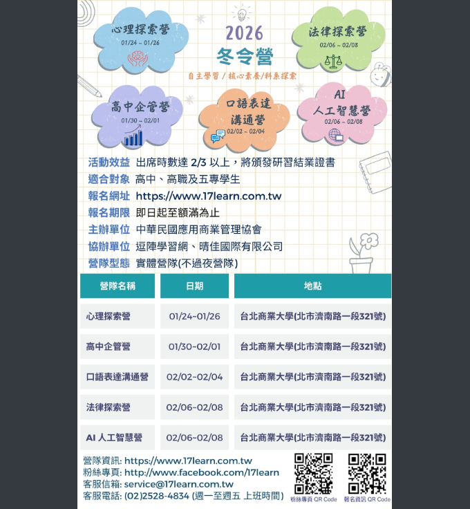 【2026 寒假冬令營-卓越領袖探索系列】請同學踴躍報名參加。