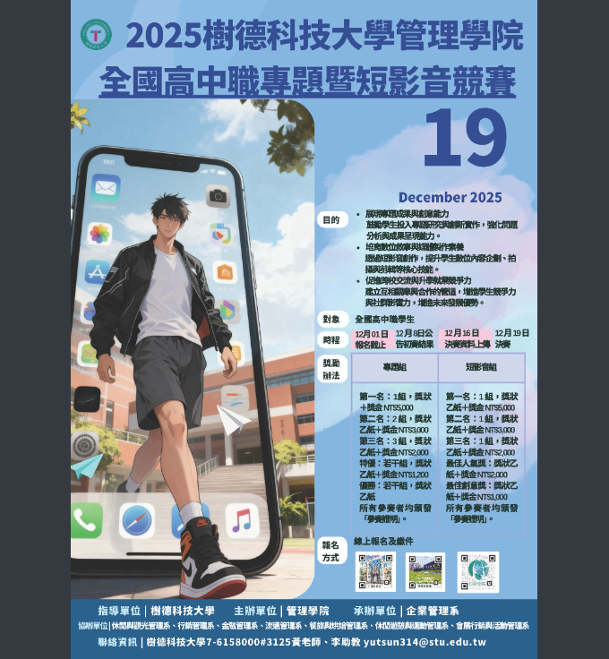 「2025樹德科技大學管理學院高中職專題暨短影音 競賽」