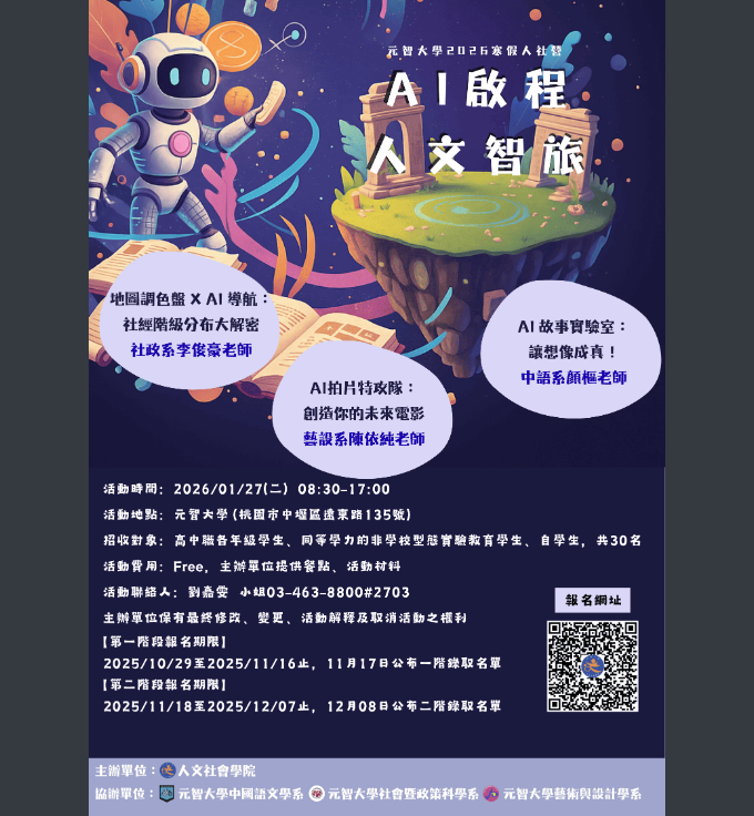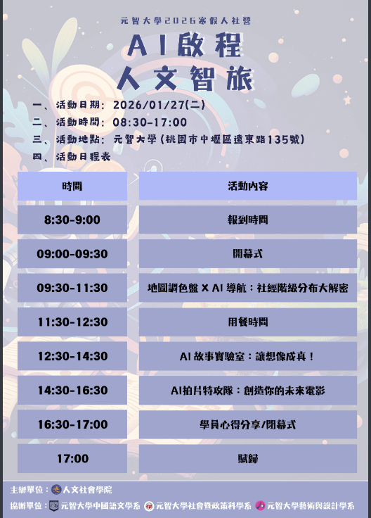 「元智大學2026寒假人社營- AI啟程:人文智旅」活動