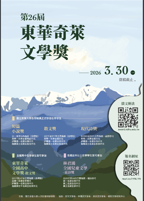 「第26屆東華奇萊文學獎」徵文簡章及宣傳海報