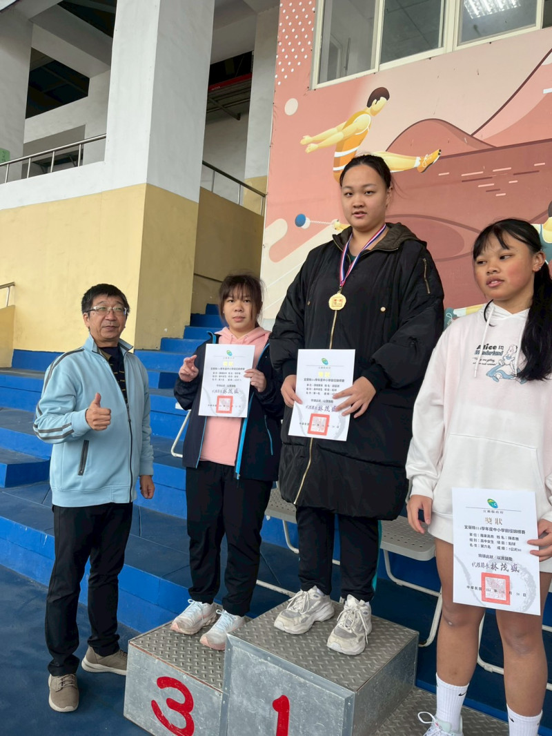 | 第五名 | 高女鉛球 -203陳羿菲 高女1500m-112吳庭瑄 高男3000m-108吳政恩 |