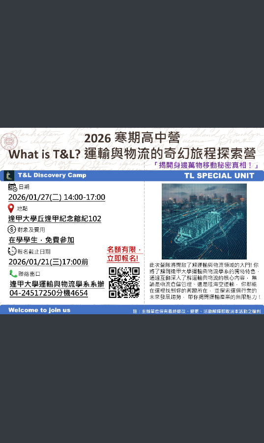 逢甲大學「What isT&L 運輸與物流的奇幻旅程探索營」