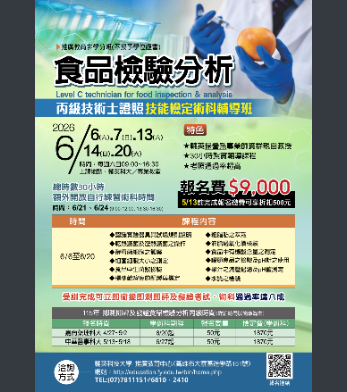 輔英科技大學食品檢驗分析丙級技術士證照技能檢定術科輔導班課程簡章