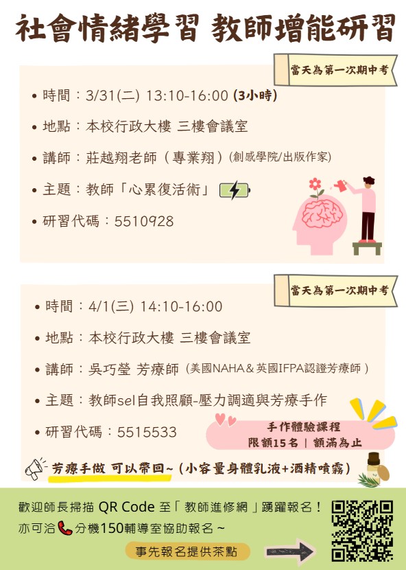校內教師SEL系列增能研習,歡迎報名參加