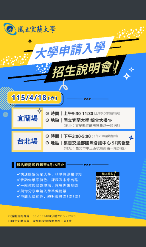 國立宜蘭大學115學年度大學申請入學招生說明會海報.png