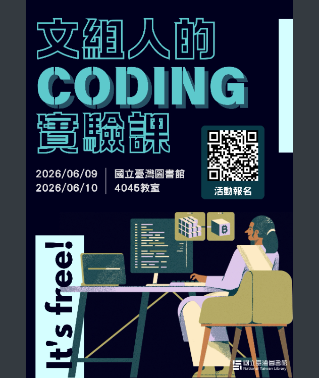 檢送國立臺灣圖書館115年多元閱讀推廣計畫「館員專業增能課程:文組人的Coding實驗課」相關資料,請踴躍報名參加。