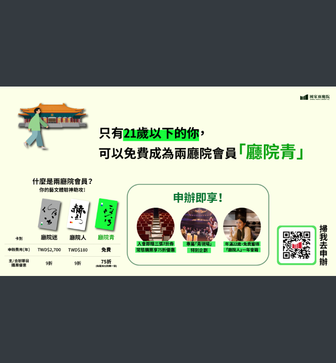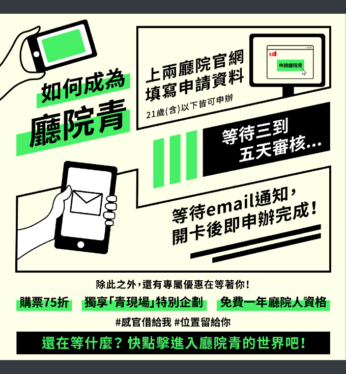 「國家兩廳院青年會 員—廳院青」免費申辦資訊
