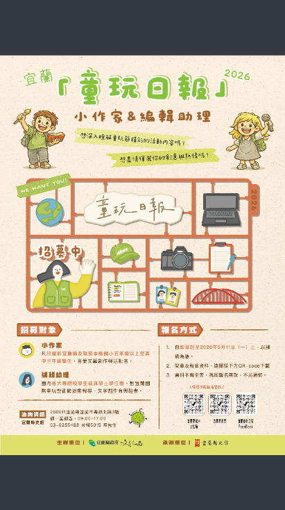 「2026宜蘭國際童玩藝術節-童玩日報」小作 家及編輯助理招募事宜