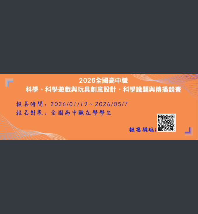 「2026全國高中職科學、科 學遊戲與玩具創意設計、科學議題與傳播競賽」報名期限 延長